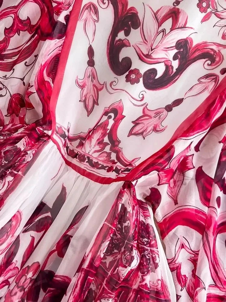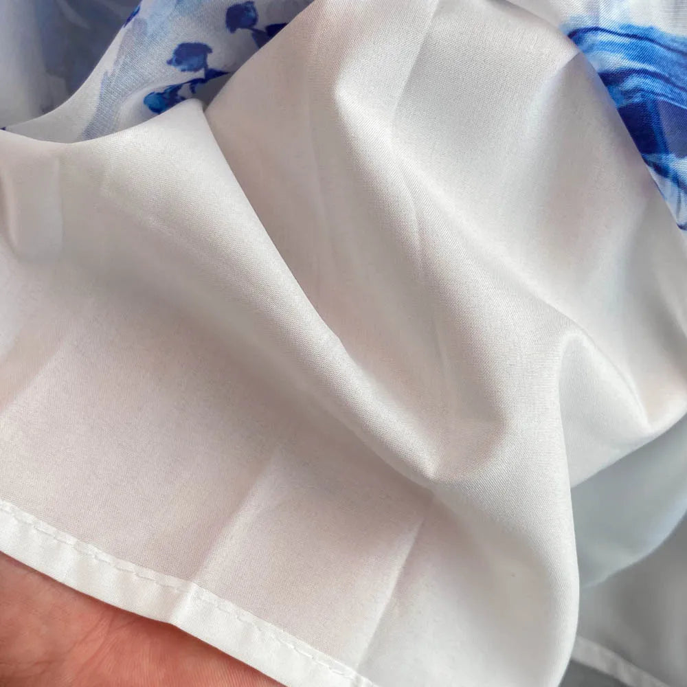 New Summer Bohemian Blue And White Porcelain Print Chiffon Dress Women Clothing O Neck Flare Sleeve Large Swing Maxi Vestidos